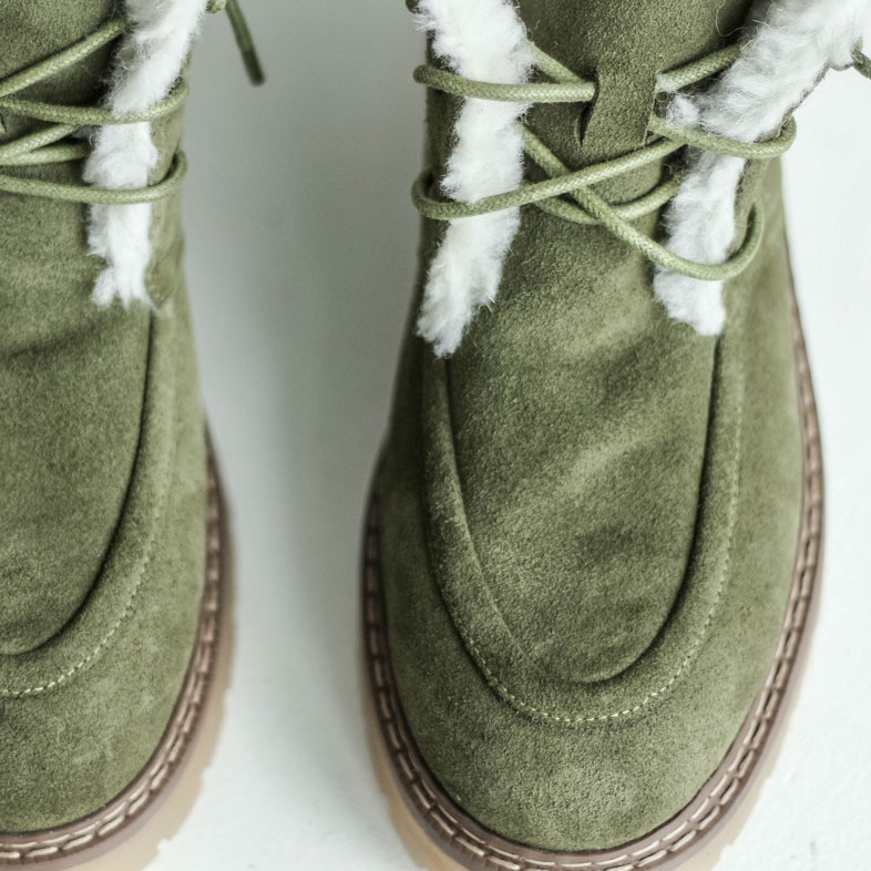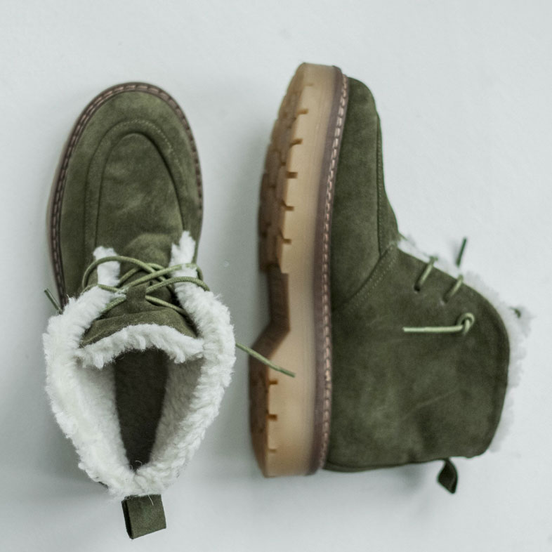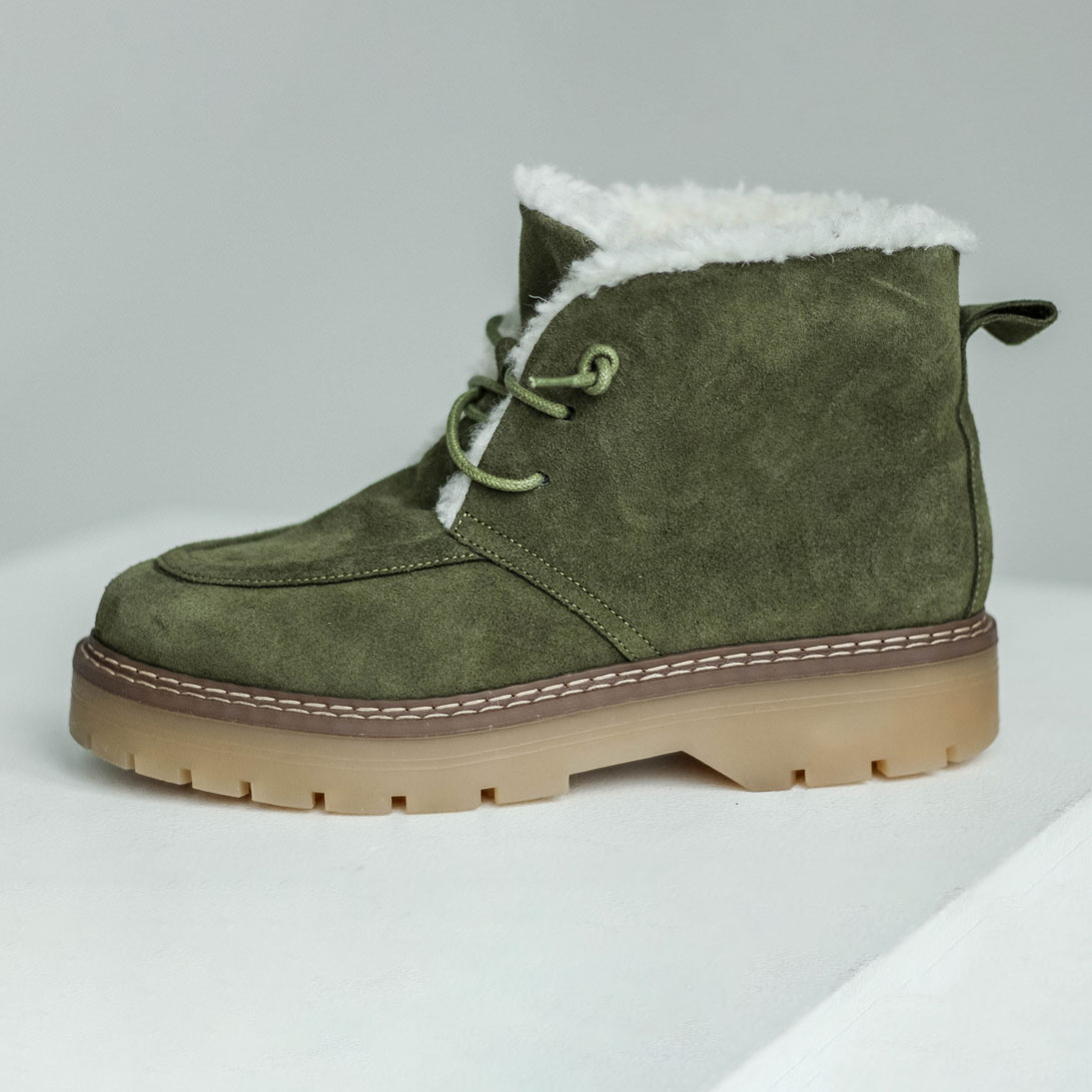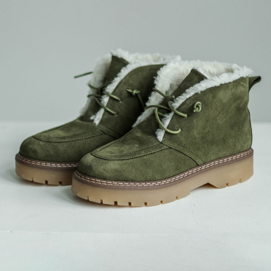 Ботинки/ угги замшевые с мехом. Ботинки/угги в цвете хаки -выбор тех, кто хочет сочетать уют, прочность и трендовый дизайн в одной паре обуви. Материалы: 100% натуральная замша. Подклад на выбор - кожа, байка или мех. Температурный режим: кожа - до −5 °C, байка - до −20 °C, мех - до −30 °C. Параметры изделия: Подошва -2,5 см; пяточная часть:3,5 см Высота голенища -11 см