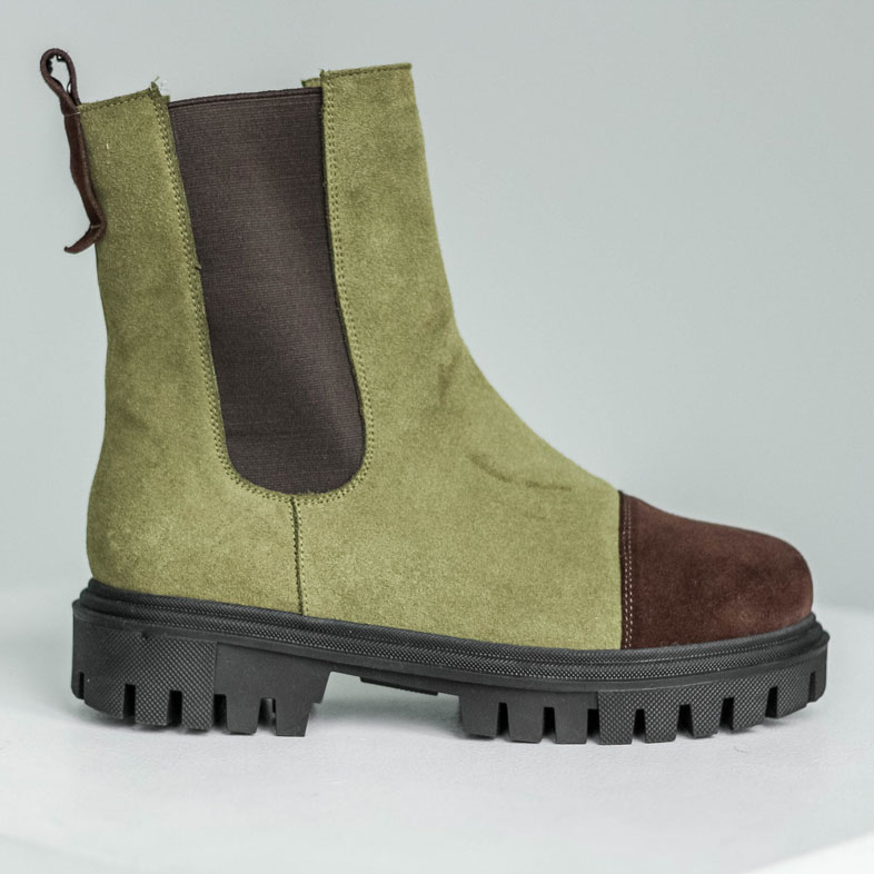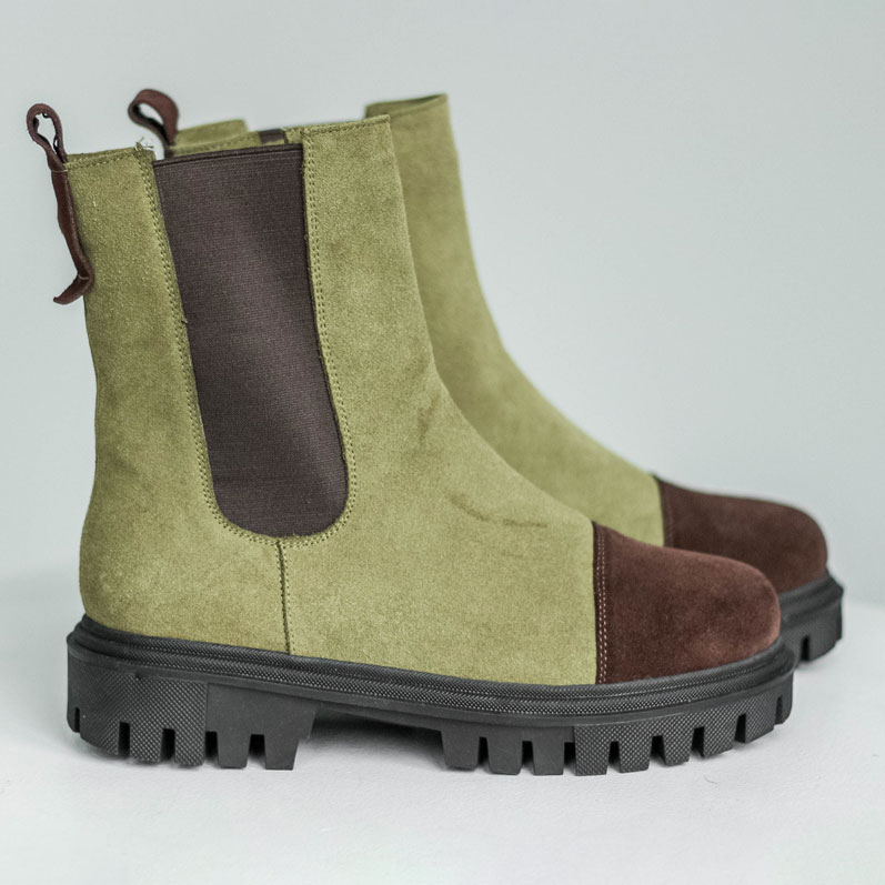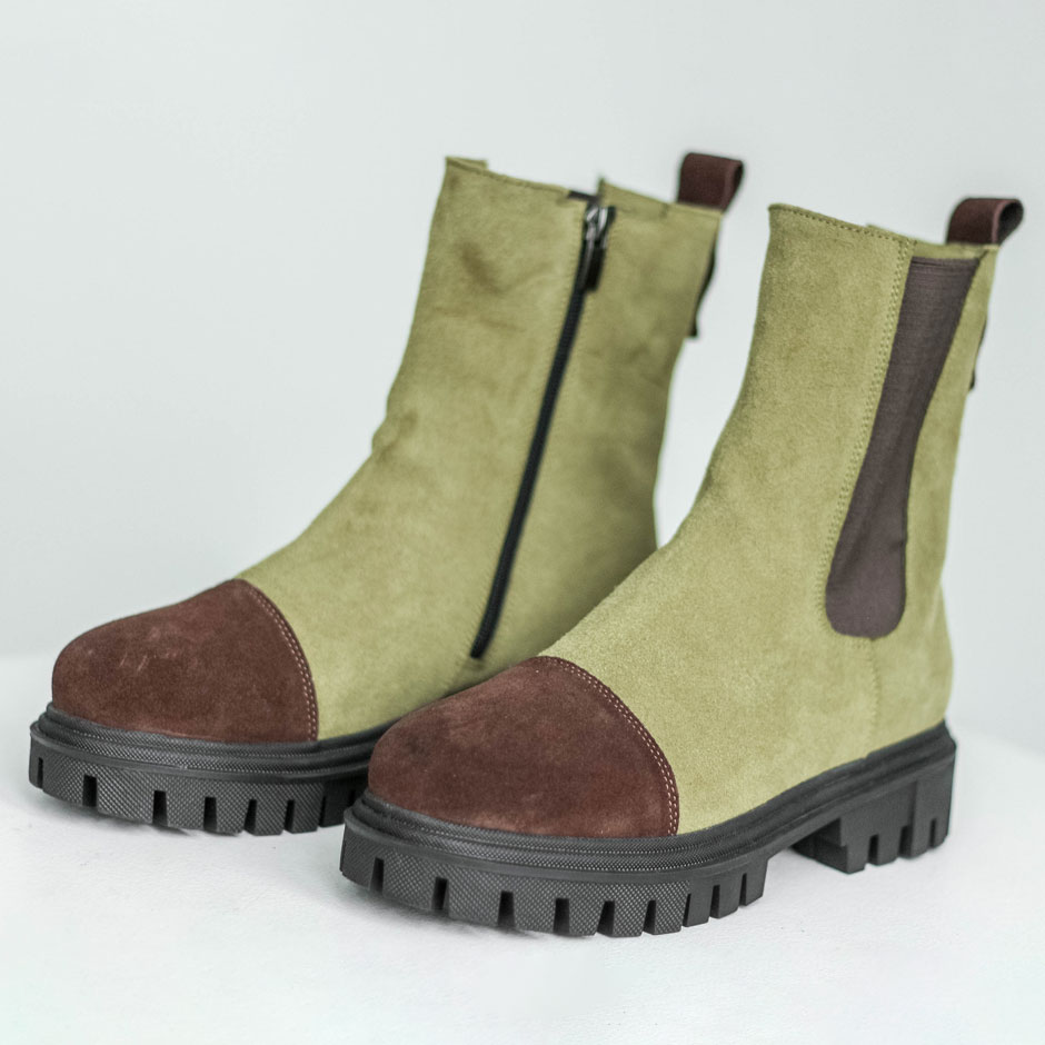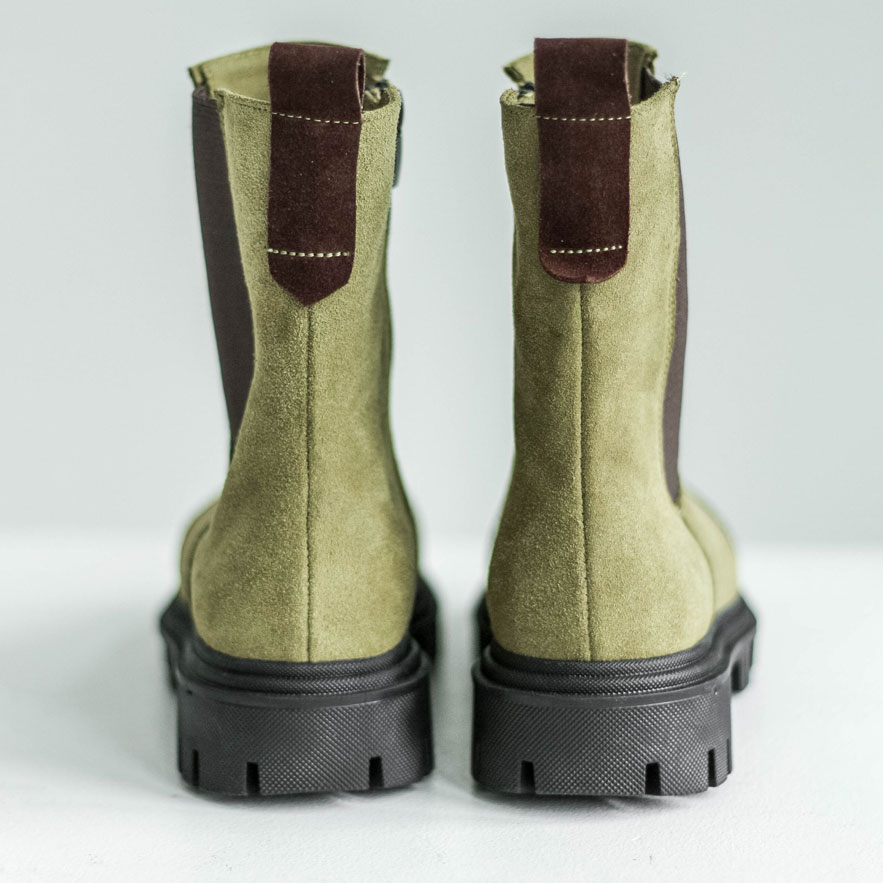 Челси замшевые цвета оливы с акцентным носиком шоколадного цвета