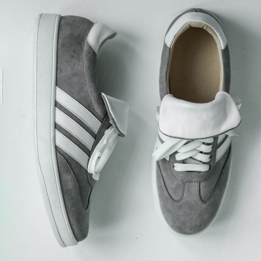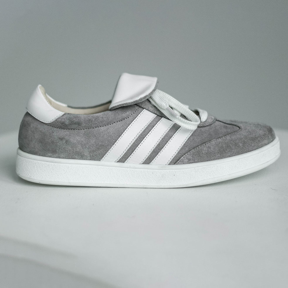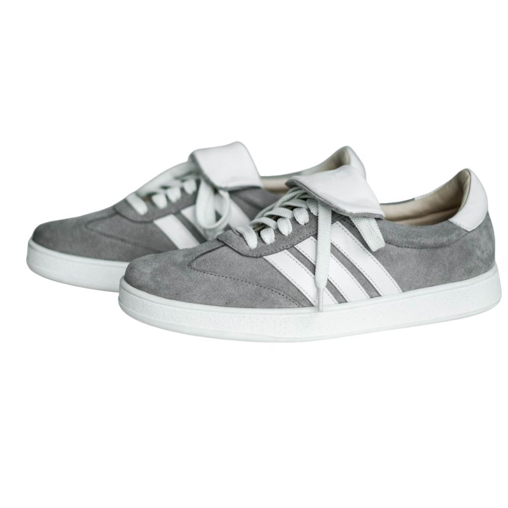 Кеды замшевые серые с белым ,самба Кеды выполнены из мягкой замши в сером оттенке с акцентным белыми языком и вставками - лампасами.