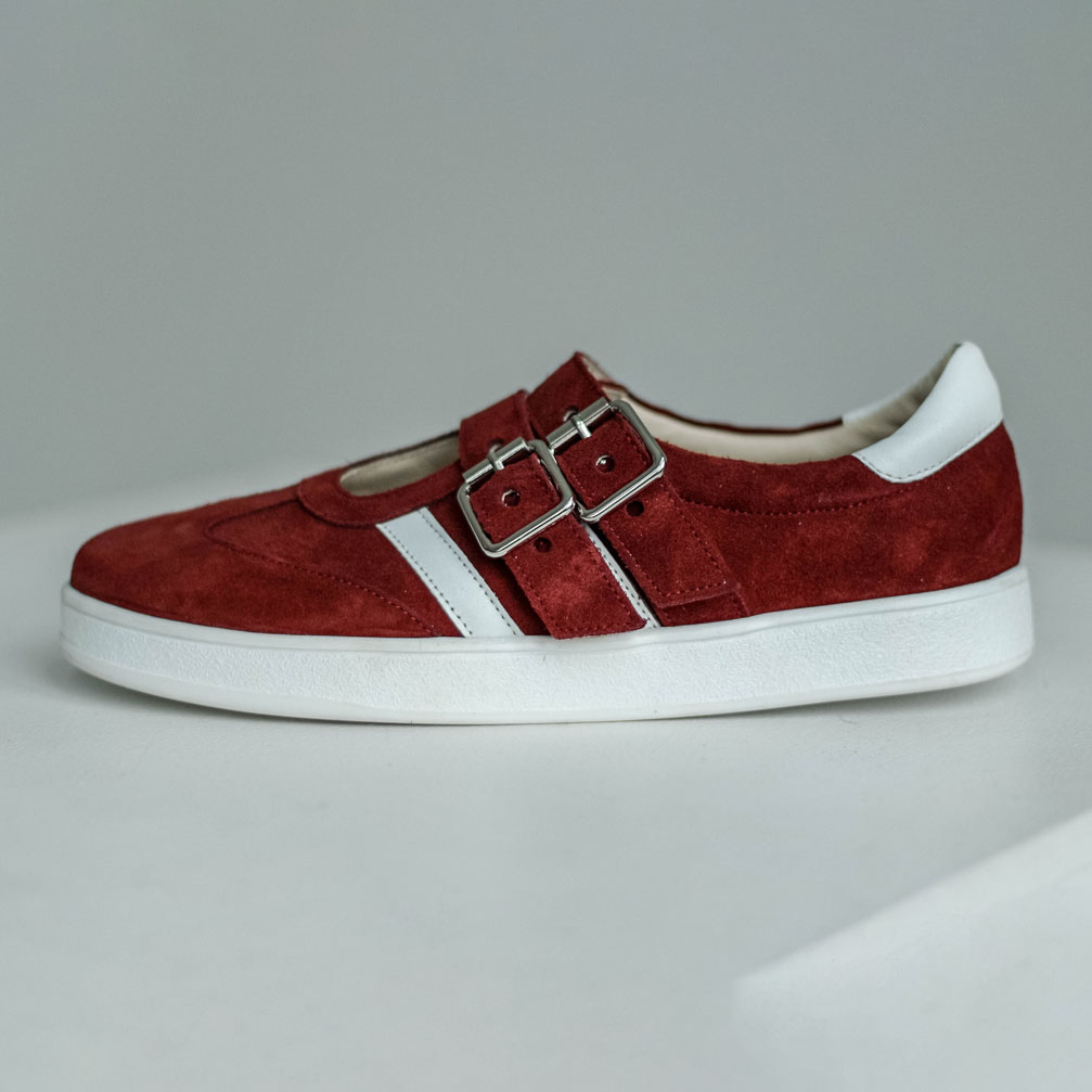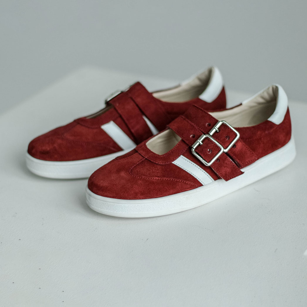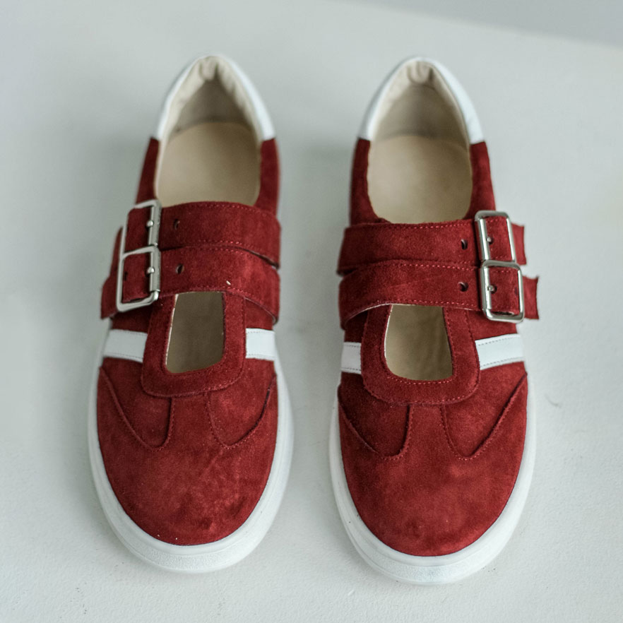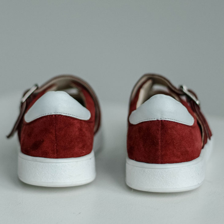 Кеды сандалии замшевые красные с ремешками и белыми лапасами Материалы: 100% натуральная замша + натуральная кожа. Подклад на выбор - кожа, байка или мех. Температурный режим: кожа - до −5 °C, байка - до −20 °C, мех - до −30 °C. Параметры изделия: Высота подошвы (борт):2,5 см