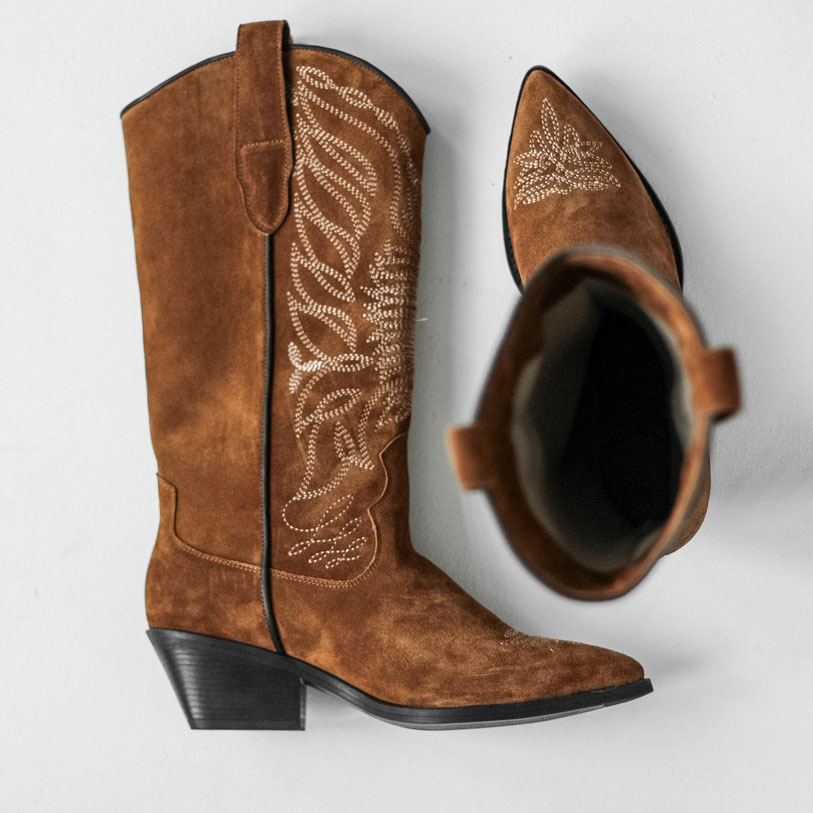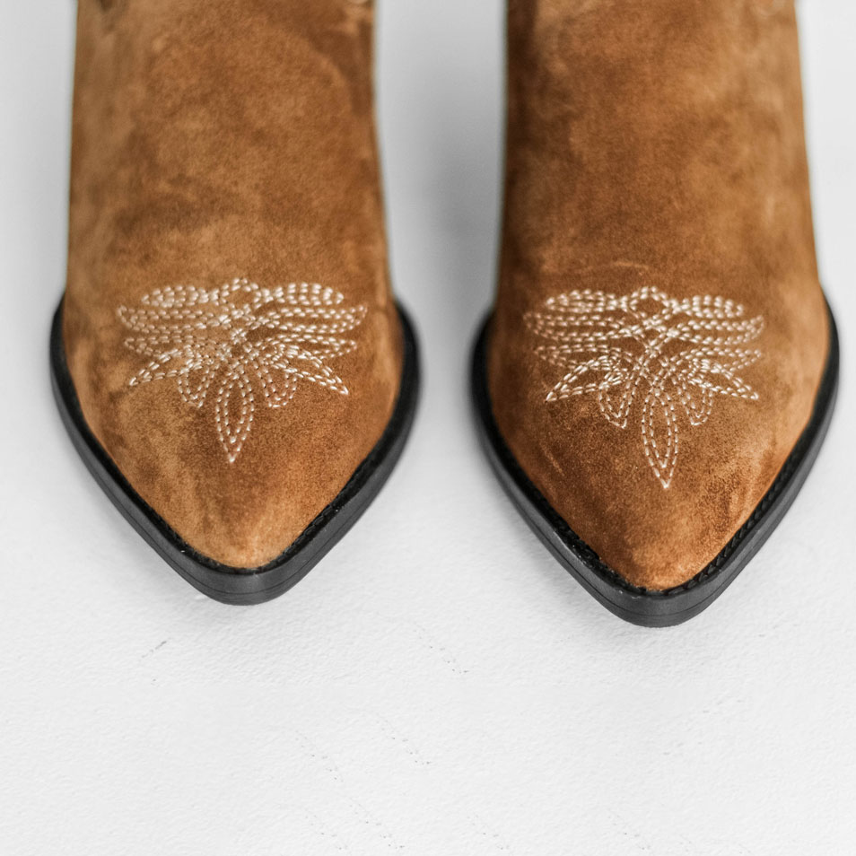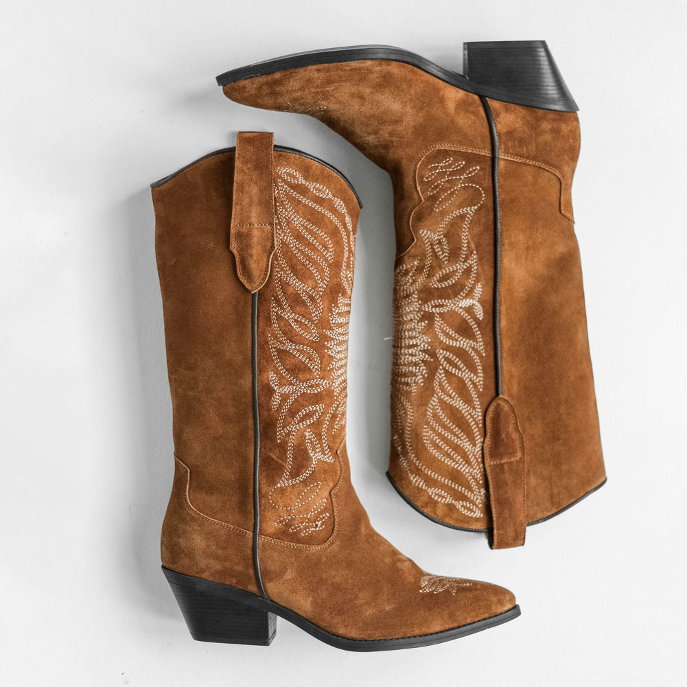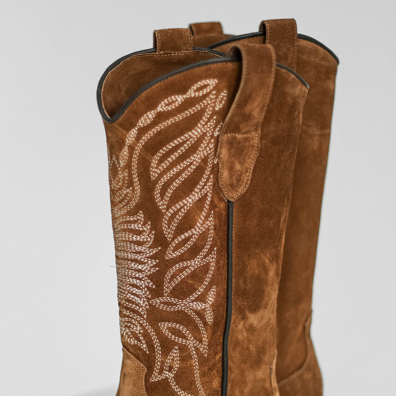 Высокие казаки из натуральной замши цвета охра с вышивкой на голенище. Уникальный дизайн и характерные детали точно привлекут внимание , удобная колодка сделает пару незаменимой для долгих прогулок. Материалы: 100% натуральная замша. Подклад на выбор - кожа, байка или мех. Температурный режим: кожа - до −5 °C, байка - до −20 °C, мех - до −30 °C. Параметры изделия: Каблук - 5 см Высота голенища - 20 см