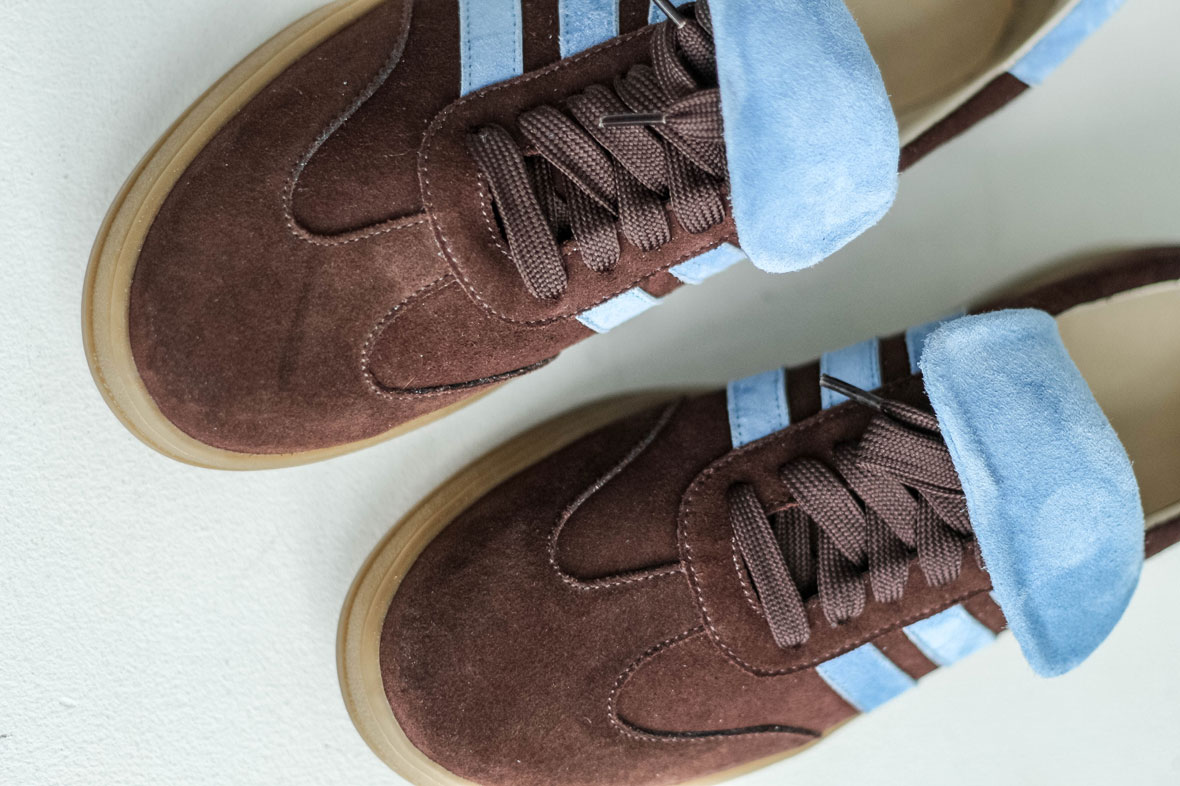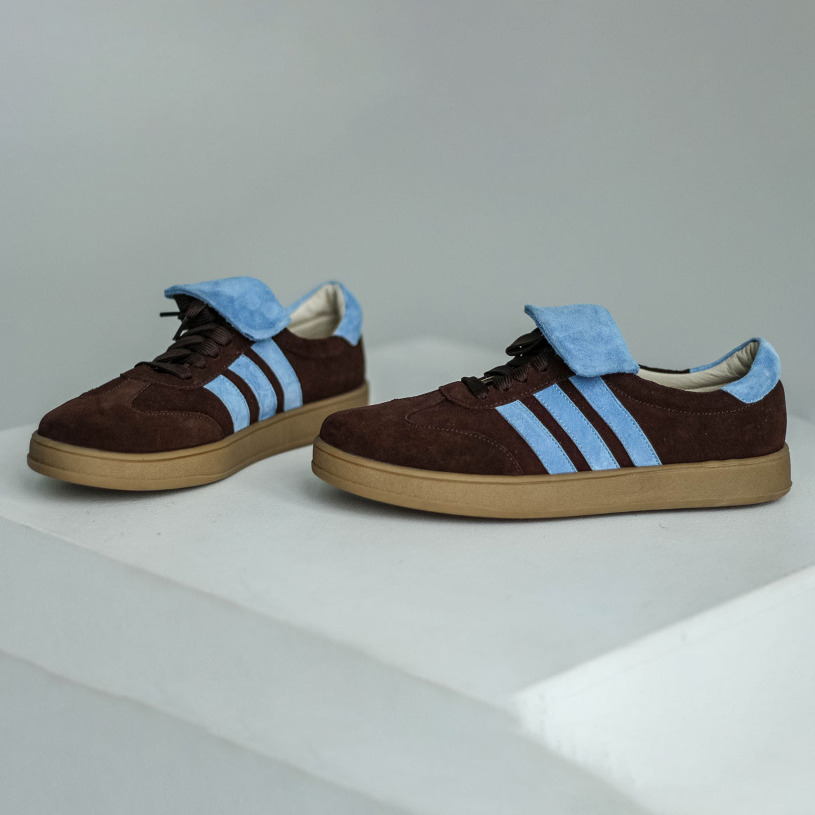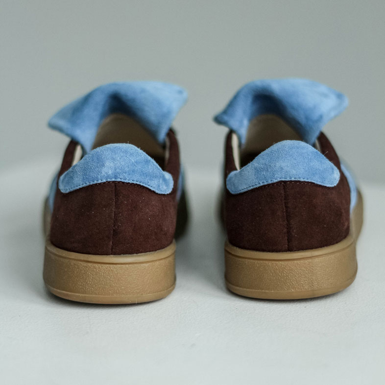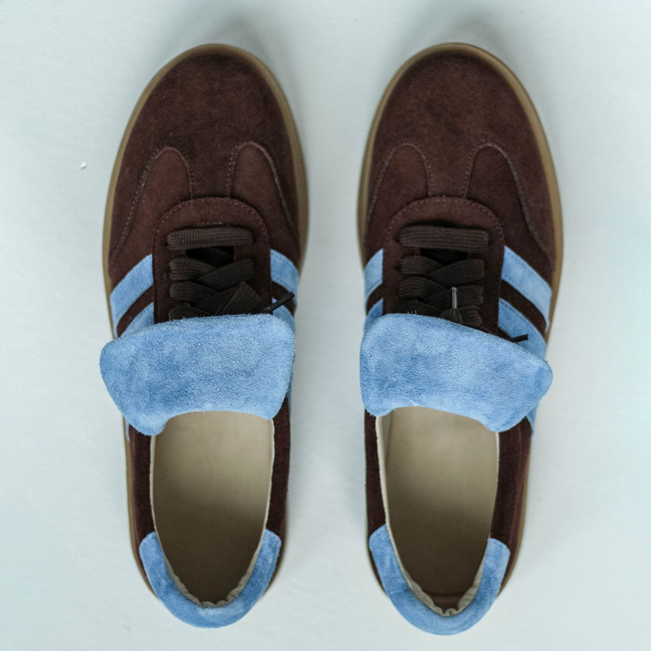 Кеды замшевые темный шоколад с голубым ,самба Кеды выполнены из мягкой замши в трендовом шоколадном оттенке с контрастными голубыми элементами.