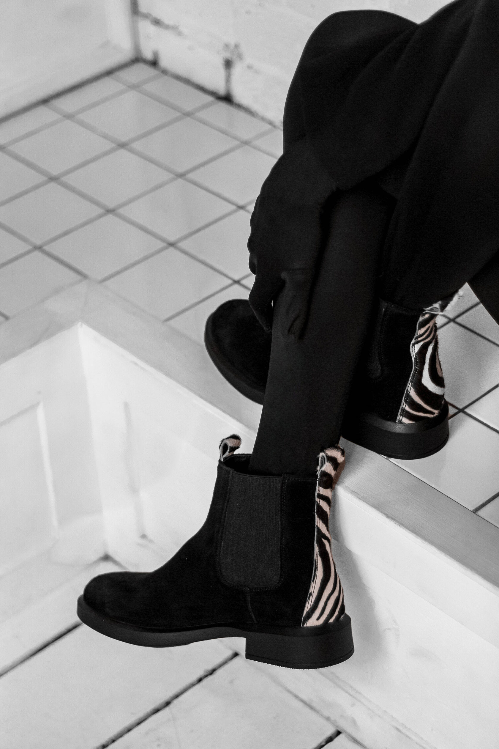 Челси из черной замши с акцентом на пятке из меха пони - стильная пара, которая оживит любой образ. Идеальная посадка благодаря резинке и удобная колодка делают их комфортными для повседневной носки и особых случаев.. Материалы: 100% натуральная замша + мех пони. Подклад на выбор - кожа, байка или мех. Температурный режим: кожа - до −5 °C, байка - до −20 °C, мех - до −30 °C. Параметры изделия: Каблук - 3 см Высота голенища - 15 см