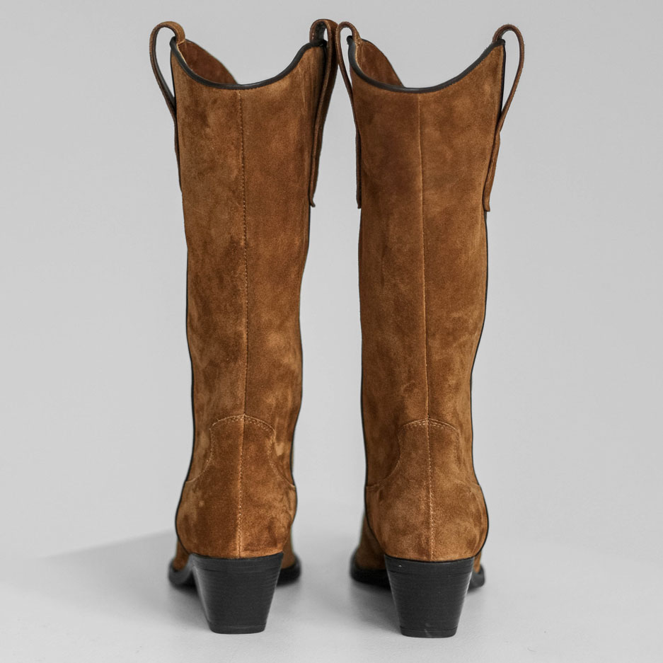 Казаки из натуральной замши - женственная и стильная пара для тех, кто ценит эстетику в каждой детали. Удобная колодка, устойчивый каблук, продуманный силуэт подчёркивает изящность линии ноги. Материалы: 100% натуральная замша и кожа . Подклад на выбор - кожа, байка или мех. Температурный режим: кожа - до −5 °C, байка - до −20 °C, мех - до −30 °C. Параметры изделия: Каблук - 5 см Высота голенища - 33 см