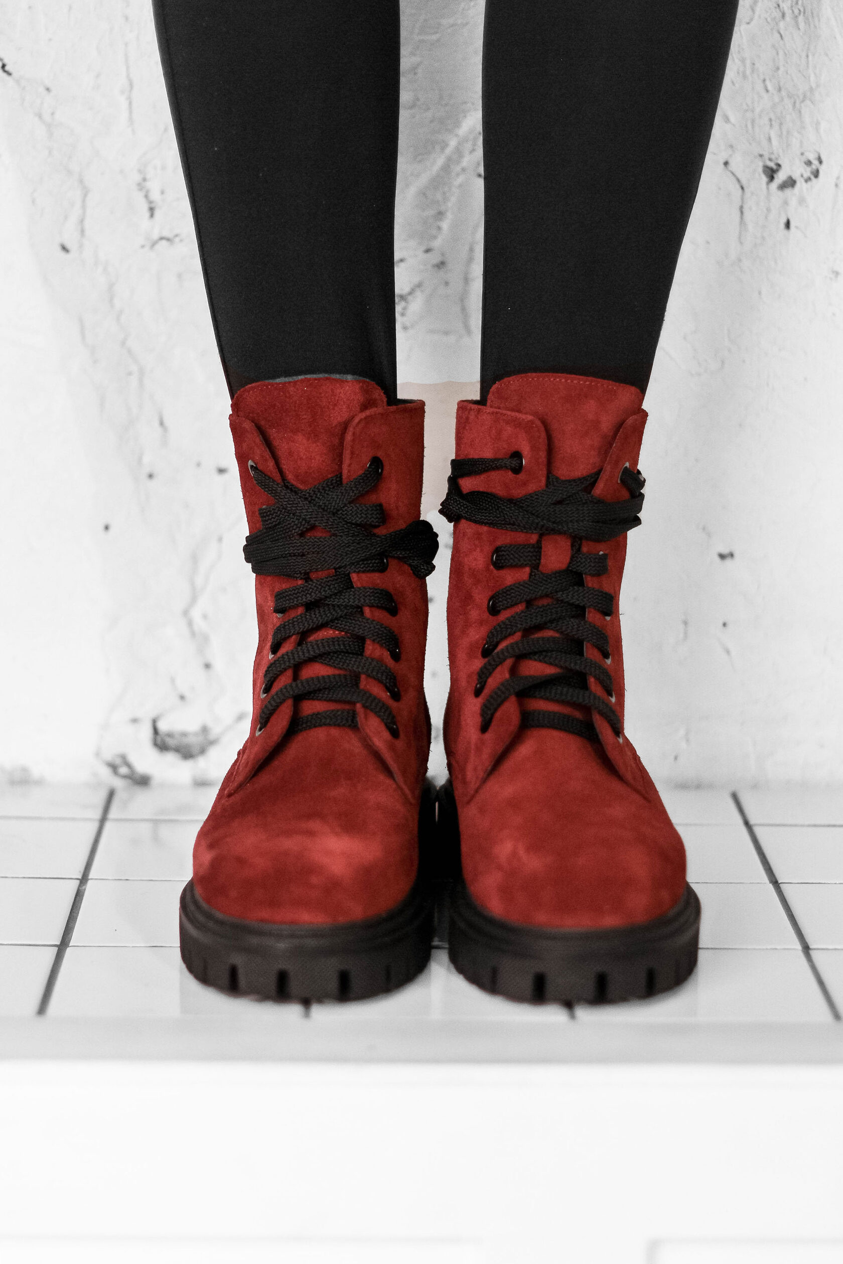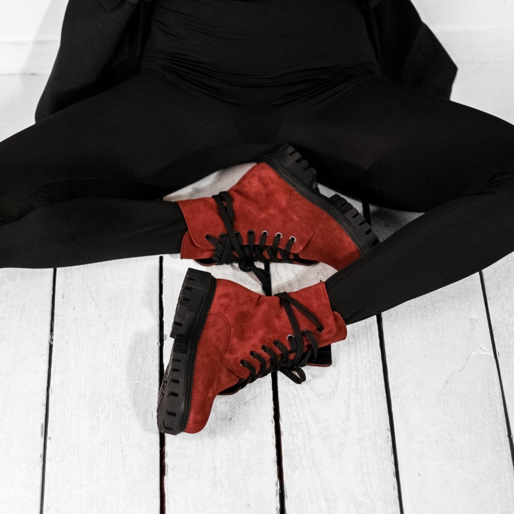 Замшевые ботинки в ярком красном оттенке,сзади молния,шнуровка для регулировки обуви по подъему. Материалы: 100% натуральная замша . Подклад на выбор - кожа, байка или мех. Температурный режим: кожа - до −5 °C, байка - до −20 °C, мех - до −30 °C. Параметры изделия: Каблук - 4,5 см Высота голенища - 15 см