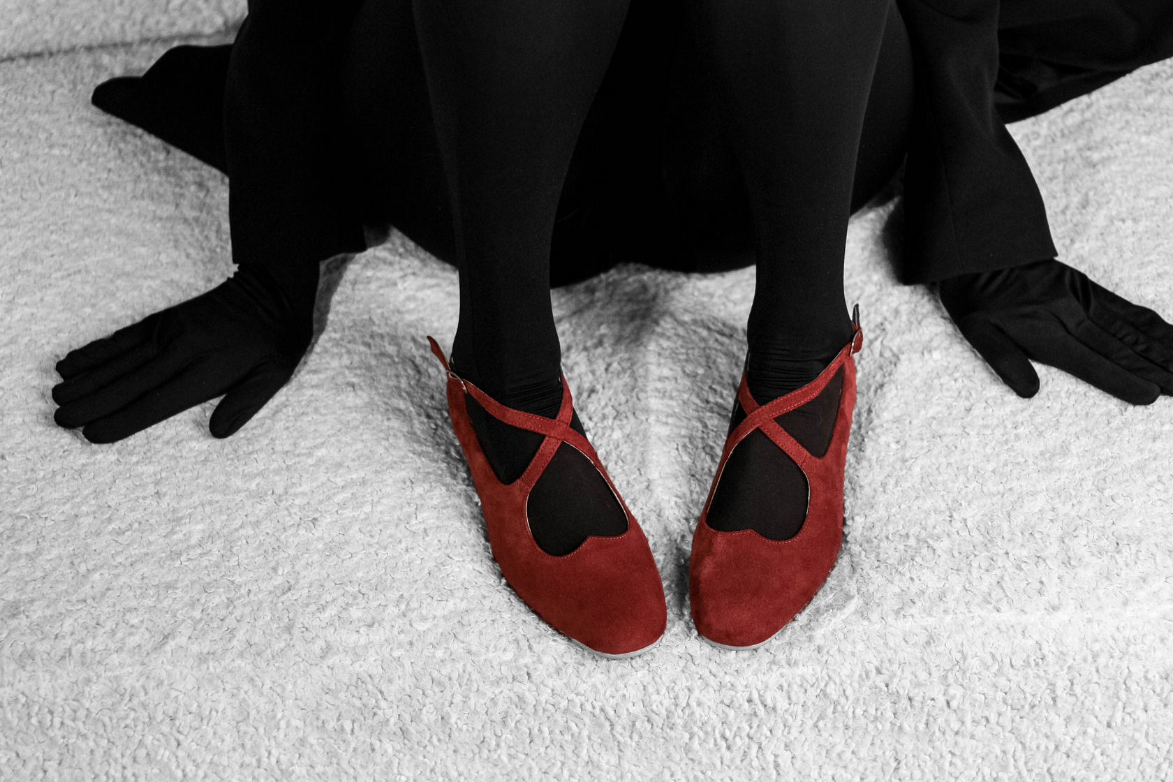 Балетки из красной замши - смелый акцент и игра на контрастах. Квадратный мыс, вырез в форме сердца и изящные ремешки создают образ с характером и женственностью. Эта пара легко впишется как в лаконичные, так и в выразительные образы, добавляя им нотку дерзкого шика. Материалы: 100% натуральная замша . Подклад кожа