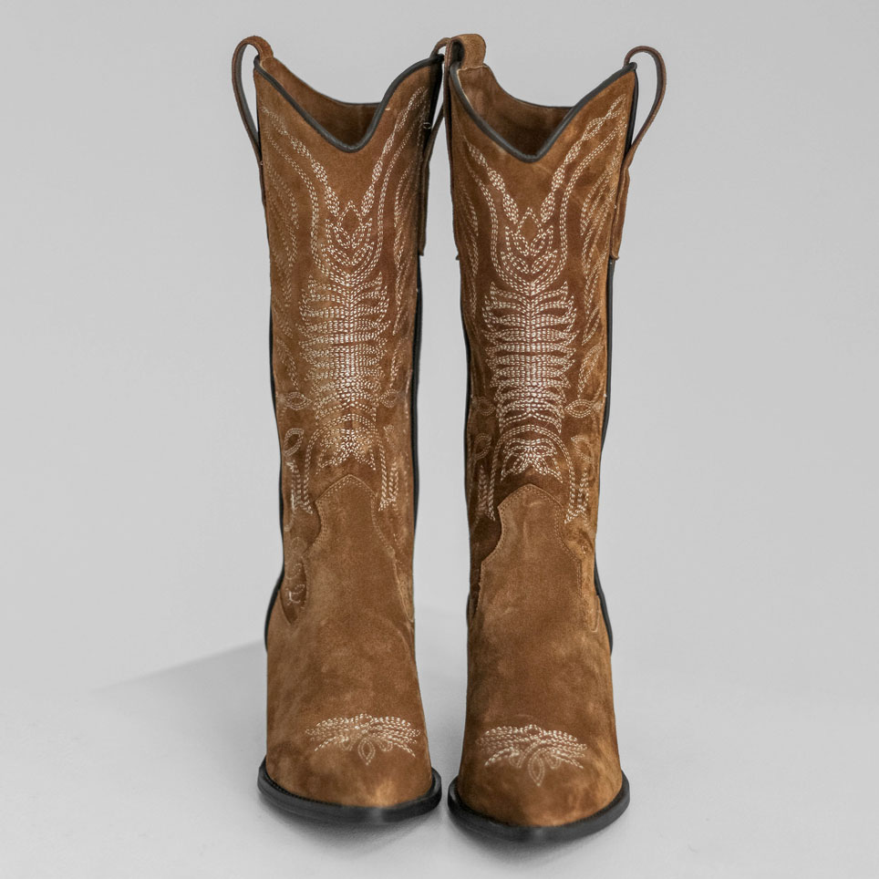 Казаки из натуральной замши - женственная и стильная пара для тех, кто ценит эстетику в каждой детали. Удобная колодка, устойчивый каблук, продуманный силуэт подчёркивает изящность линии ноги. Материалы: 100% натуральная замша. Подклад на выбор - кожа, байка или мех. Температурный режим: кожа - до −5 °C, байка - до −20 °C, мех - до −30 °C. Параметры изделия: Каблук - 5 см Высота голенища - 20 см